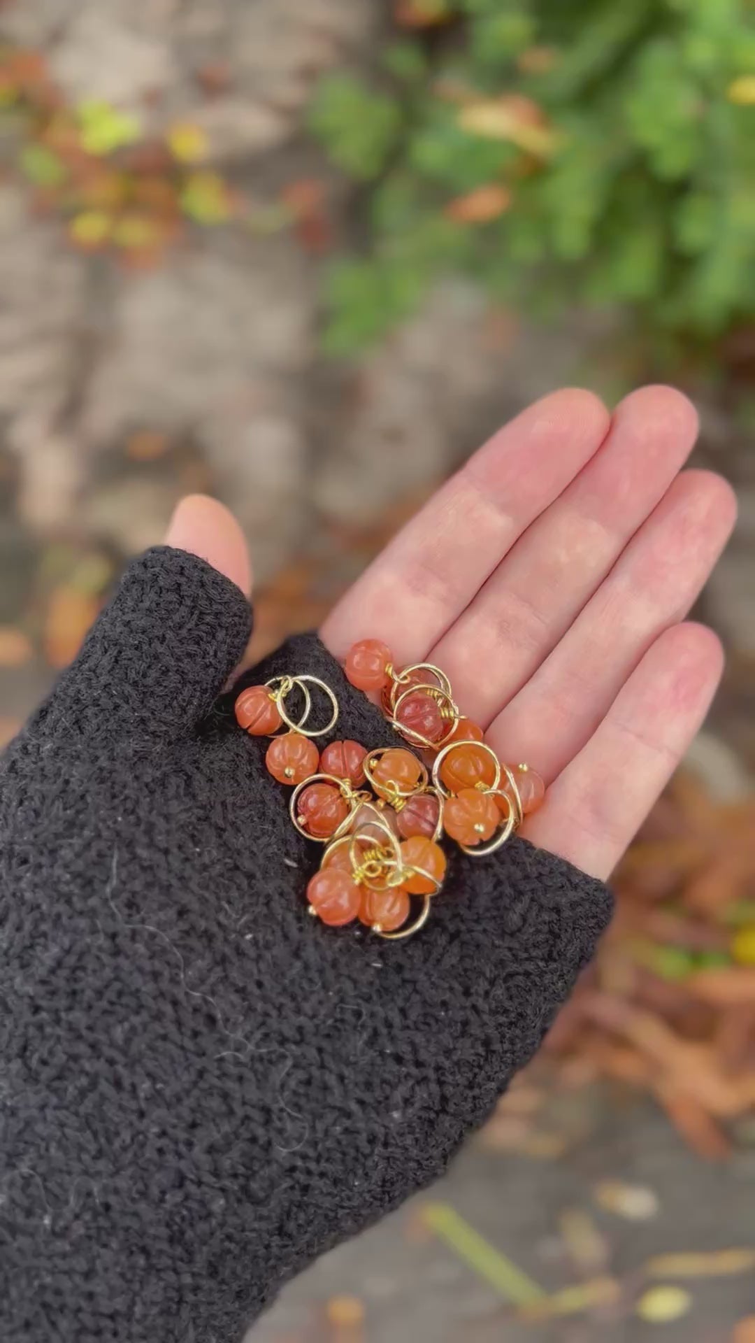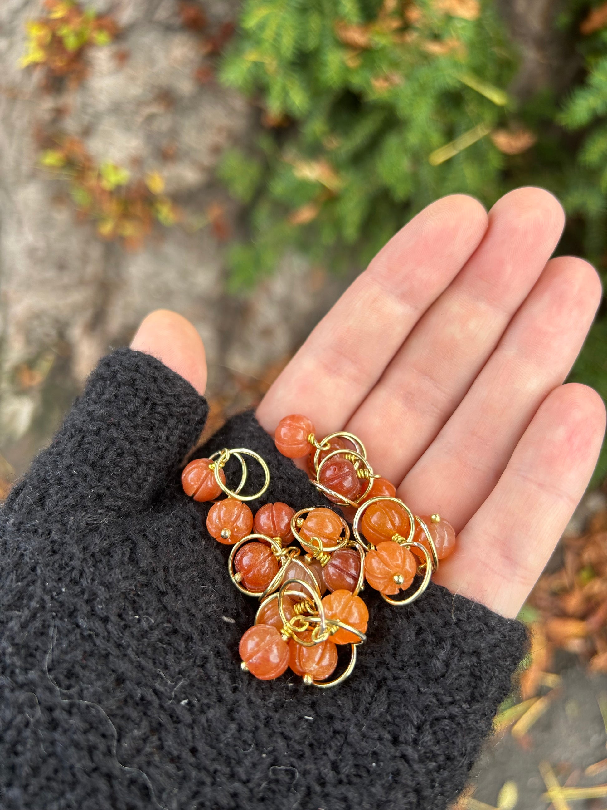 Fineste stenperle græskar på messing ring passende til pind 9.