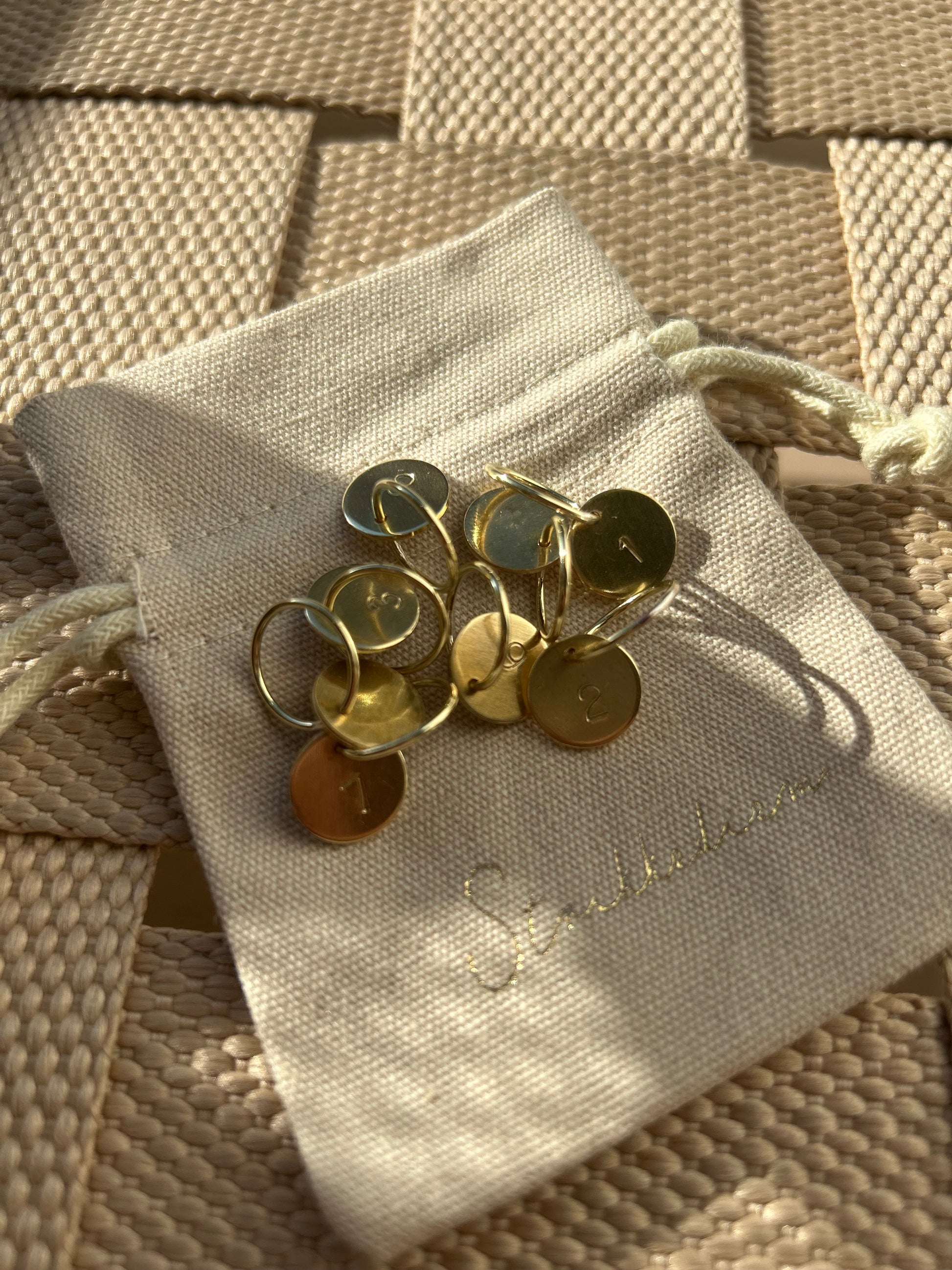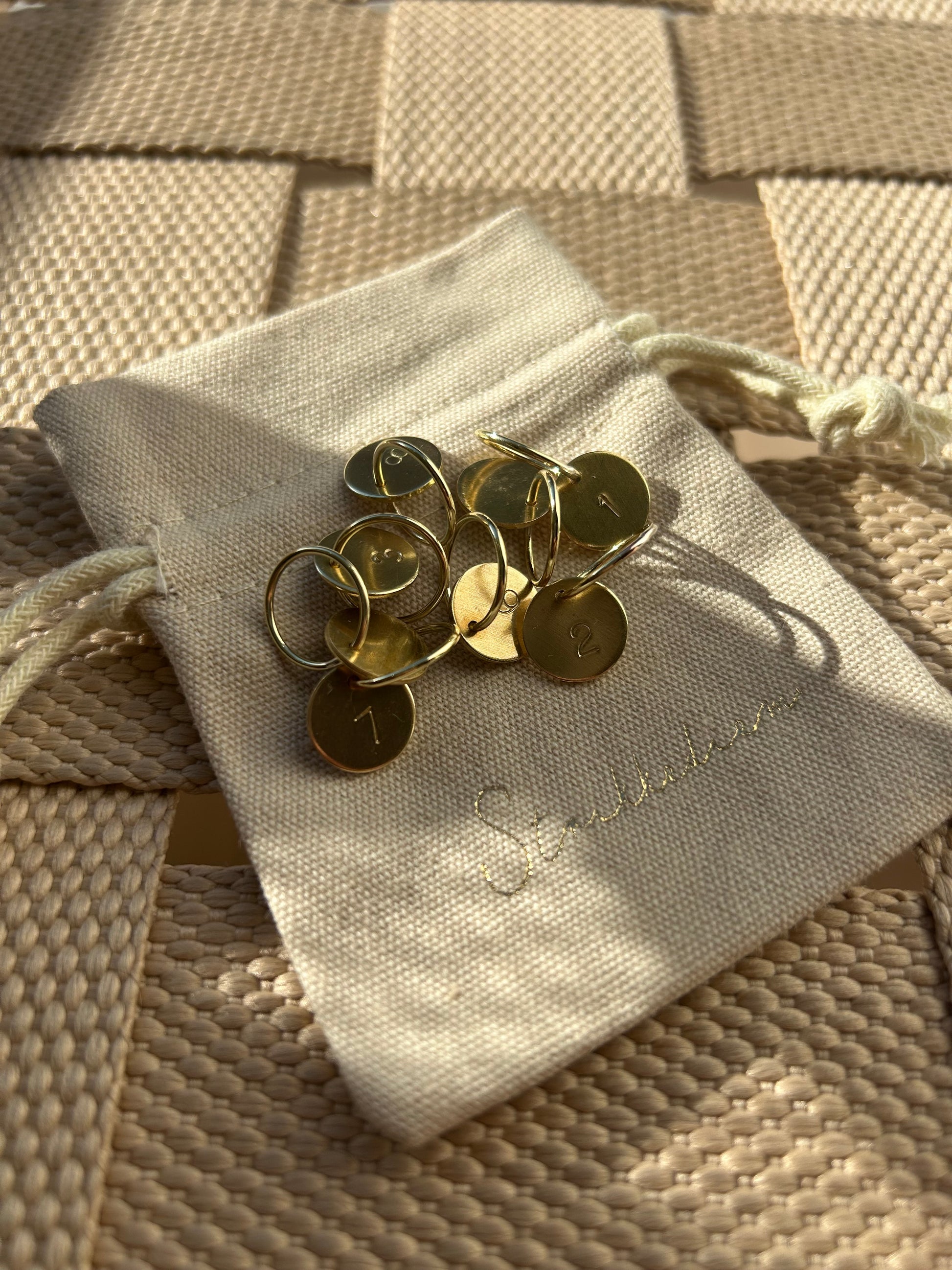Maskemarkørsæt med tal i messing med tallene: 1,2,3,4,5,6,7 og 8 som standard.